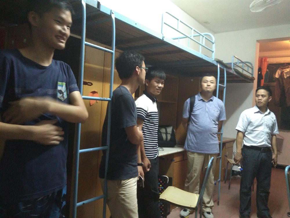 2017年9月9日晚,政法学院经理朱红英、党总支书记叶继林、团总支书记罗燕妮、2017级新生班主任以及辅导员,在员工干部的带领下深入2017级新生宿舍,了解新生情况,帮助解决新生问题。