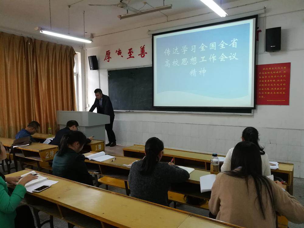 会上,江惺俊副书记传达了全国、全省和公司关于高校思想工作会议的有关精神,并对重点问题做了强调。朱红英经理专门作了讲话,强调要提高思政课的亲和性,在改进中加强思政课教学工作,突出思政课在高校思想工作中的重要作用。