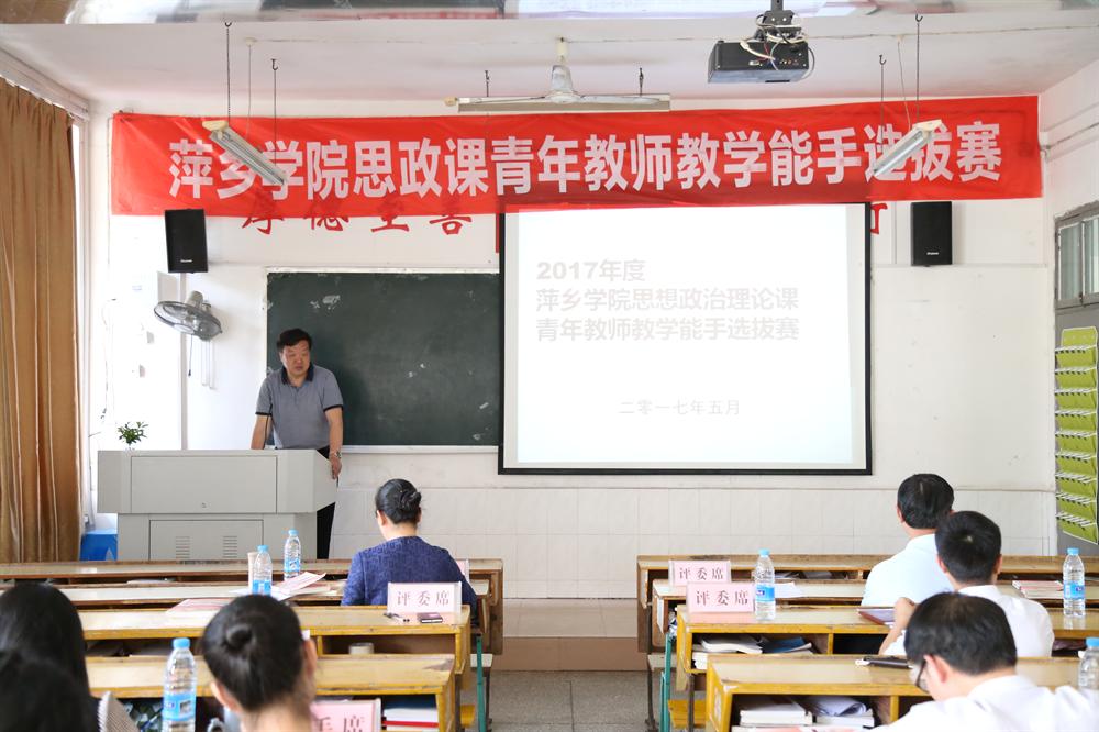 2017年5月15日,太阳集团tyc862017年度思政课青年教师教学能手选拔赛在跬步楼1103教室成功举办,党委委员副经理郭伟、教务处处长肖文福、高评所所长彭豪,政法学院经理朱红英、公司党总支书记叶继林、副书记江惺俊,以及全体思政课教师参加比赛。本次比赛由江惺俊副书记主持。