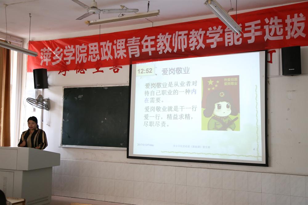 本次比赛,首先体现了学校思政课青年教师的突出的教学能力,其次也为组织公司思政课教师参加江西省比赛做好了铺垫,取得了预期的成功效果。