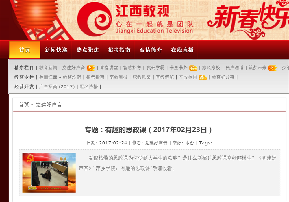 继不久前在“高教论坛”中报道公司思政课改革进展后,江西教育电视台于