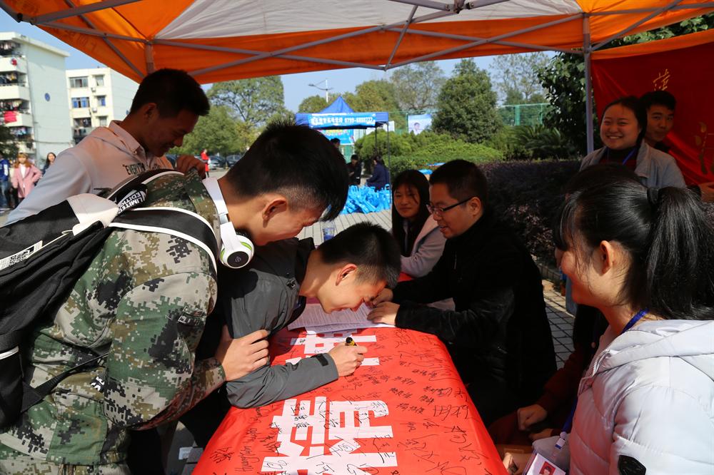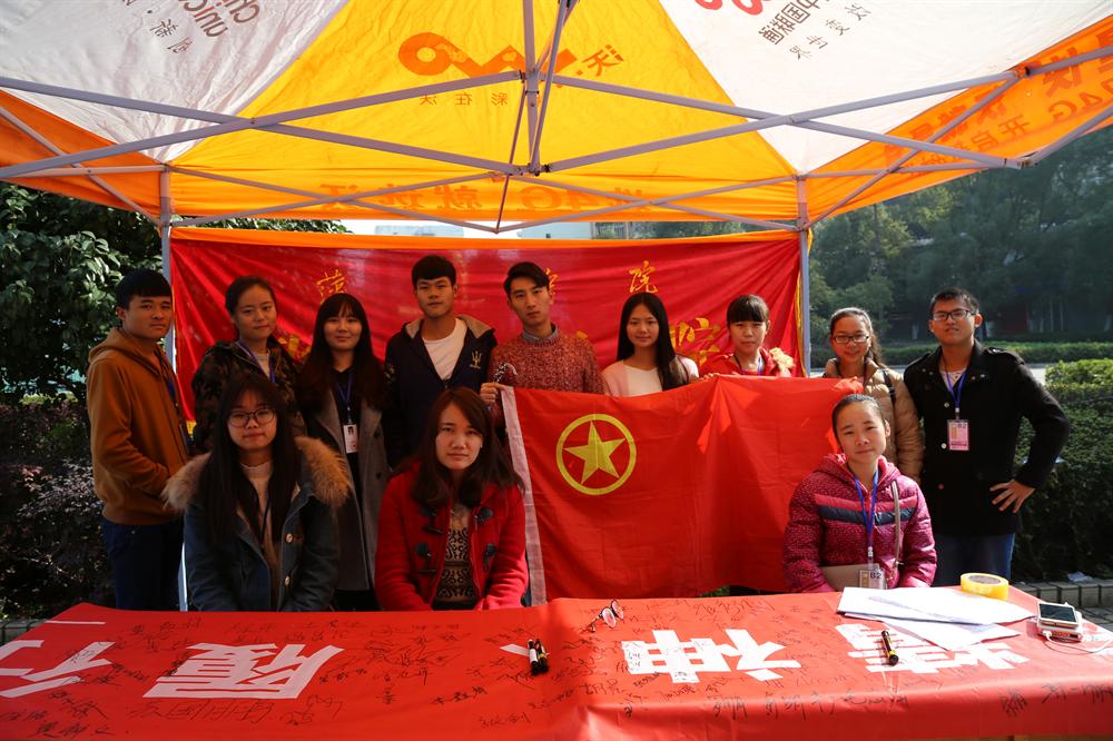 发放《中国人民共和国反家庭暴力法》传单,有法律专业教师易亮等在现场进行咨询,有在全国宪法宣传日活动的横幅上签名,现场气氛热烈,得到了师生的广泛好评
