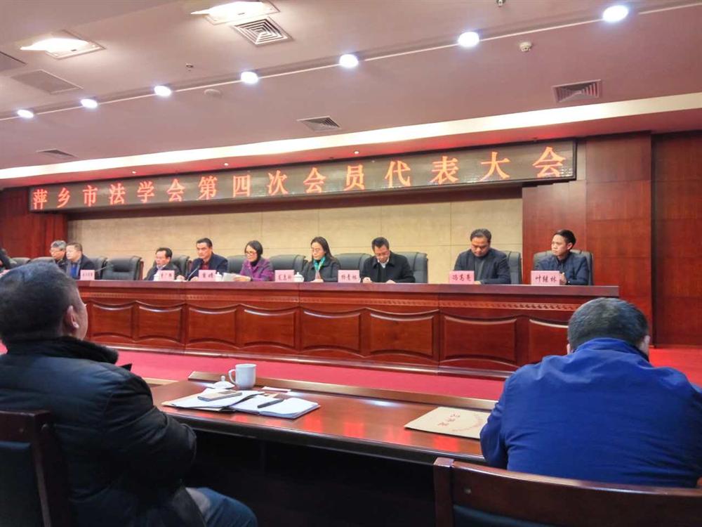 萍乡市法学会第四次会员代表大会于2016年12月28日下午在市行政中心3号一楼中心会议室举行。市领导及省法学会相关领导出席并做重要讲话。政法学院法律专业老师叶继林、张洪峰、陈冉、邹甜四位老师作为法学会会员代表出席此次会议。在此代表大会上,通过无记名投票方式先后选举产生了萍乡市法学会第二届理事会的理事、秘书长、副会长、以及会长。萍乡市委常委、政法委书记欧阳清新同志当选为新一届的会长。公司政法公司党总支书记叶继林同志当选为新一届副会长,政法学院法律教研室主任张洪峰同志当选为新一届理事。