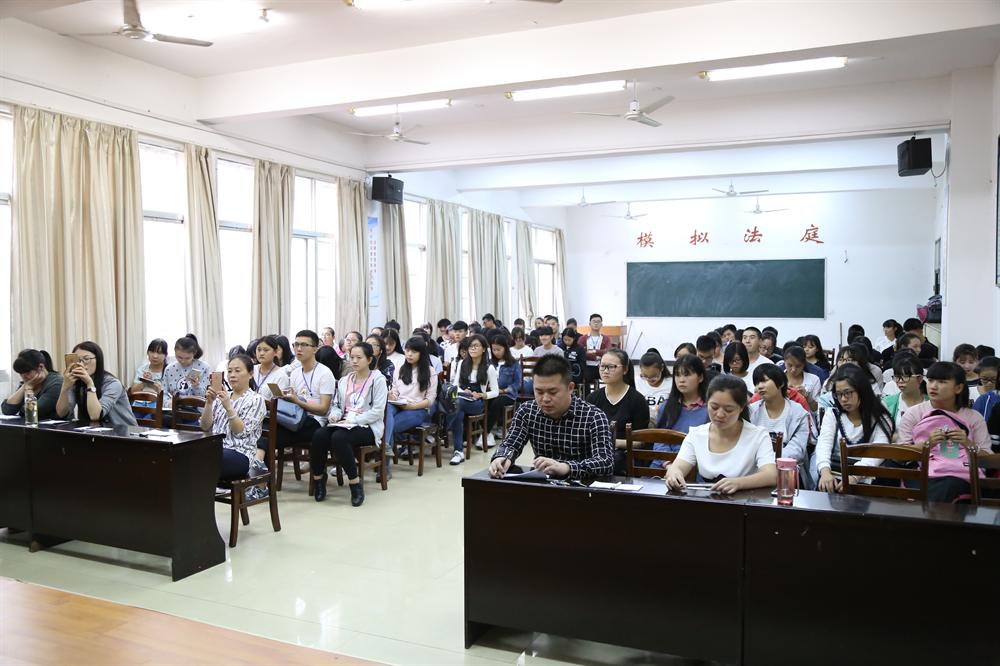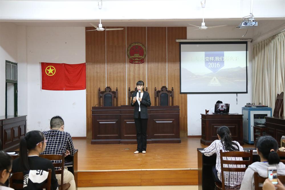 为进一步落实萍乡市第十二次党代会精神,引导公司公司团员青年齐心协力谋发展,提倡“爱国,敬业,诚信,友善”等社会主义核心价值观。10月18日中午,政法学院在模拟法庭举办了关于“三年大变样,我们怎么干”的主题演讲比赛决赛。本次出席比赛的有政法学院经理朱红英,党总支副书记江惺俊,团总支书记罗燕妮、乔兰老师和何知老师,政法学院16级全体员工参加活动。15法律事务班李妮鲜同学主持比赛。