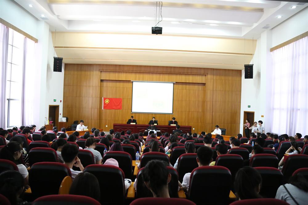 5月12日, 由校团委、政法学院主办,党委宣传部、校综治办协办的老员工法治课堂暨 “模拟法庭进校园”活动在至善楼学术报告厅举行。校保卫处处长、综治办主任肖国正,政法公司党总支书记叶继林、校团委书记刘德平、校团委副书记谢伟萍、政法公司党总支副书记江惺俊及各学院员工代表一同出席了活动。