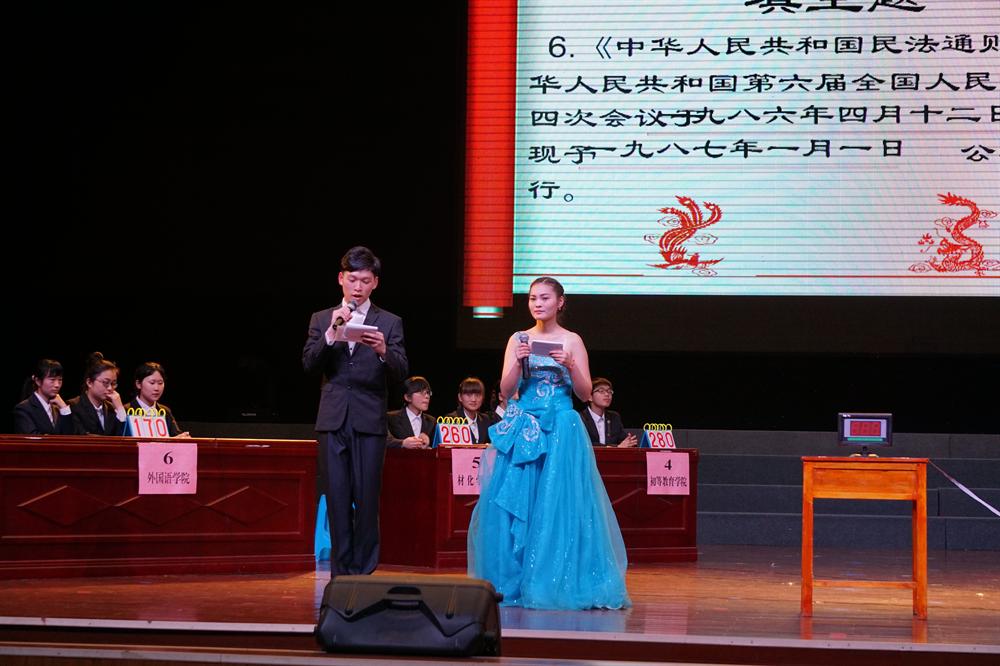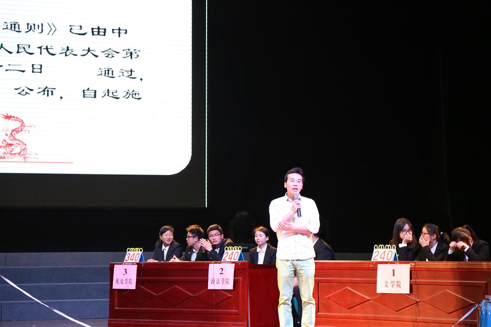比赛分为必答、抢答和风险题三种类型。比赛过程中,选手们沉着冷静、反应迅速,显示出较高的知识储备量及快速的应变能力,各代表队实力旗鼓相当,比分不相上下,使得决赛现场气氛十分火爆。比赛环节结束后,政法学院张洪峰老师对本次比赛进行了精彩点评。