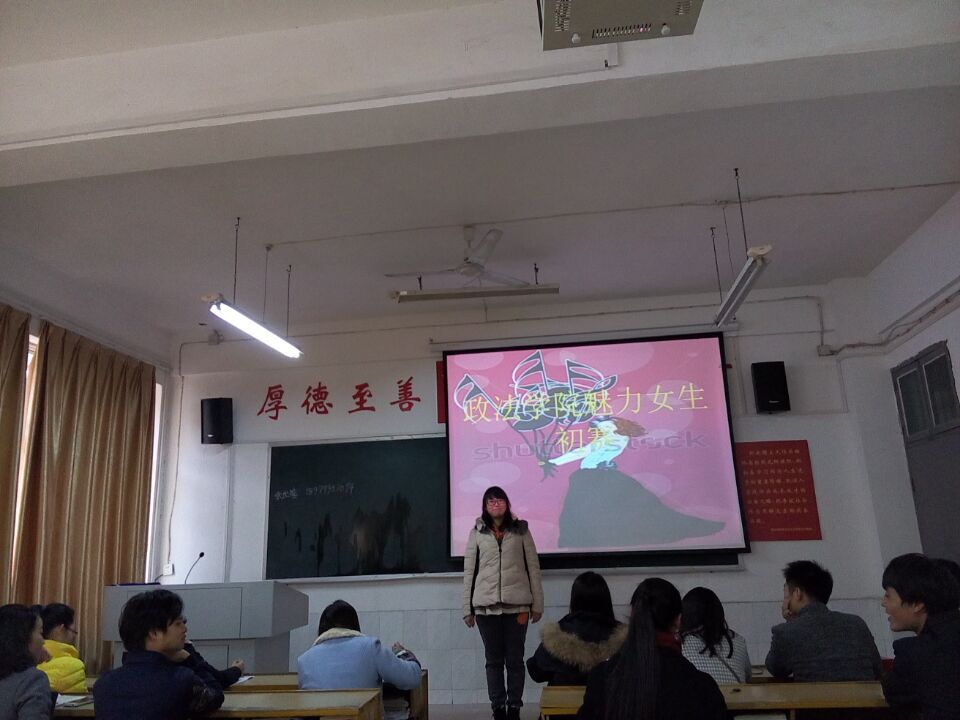 为了丰富多彩校园,学校将举行魅力女生大赛。政法学院响应学校号召,于2015年11月26日下午举行魅力女生大赛,作为校魅力女生大赛初选。大赛由15法律班李婷婷同学主持。