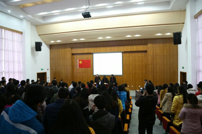 中午在至善楼学术报告厅,政法学院“普法宣传月”系列活动之五——开展“模拟法庭”法治教育活动隆重举行,近