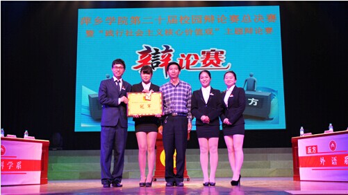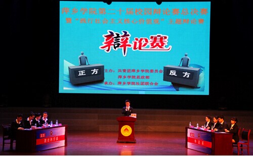 通过此次辩论赛,把社会主义核心价值观融入到校园文化建设的全过程中,积极营造良好的精神文化、、科技文化和学术文化氛围,使社会主义核心价值体系潜移默化地转化为师生的精神信仰、基本价值取向和前进的动力。