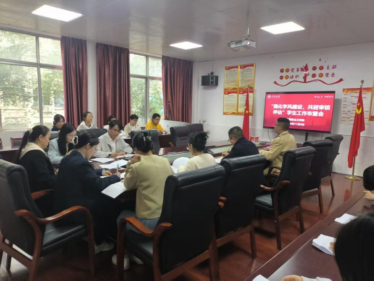 为扎实推进学风建设提质增效,全力做好审核评估迎检准备,同时强化员工消防安全意识、筑牢校园安全防线,11月6日,太阳集团tyc86召开“强化学风建设,共迎审核评估”员工工作布置会。公司党委副书记易亮主持会议,各班级辅导员、班主任及员工代表参会。