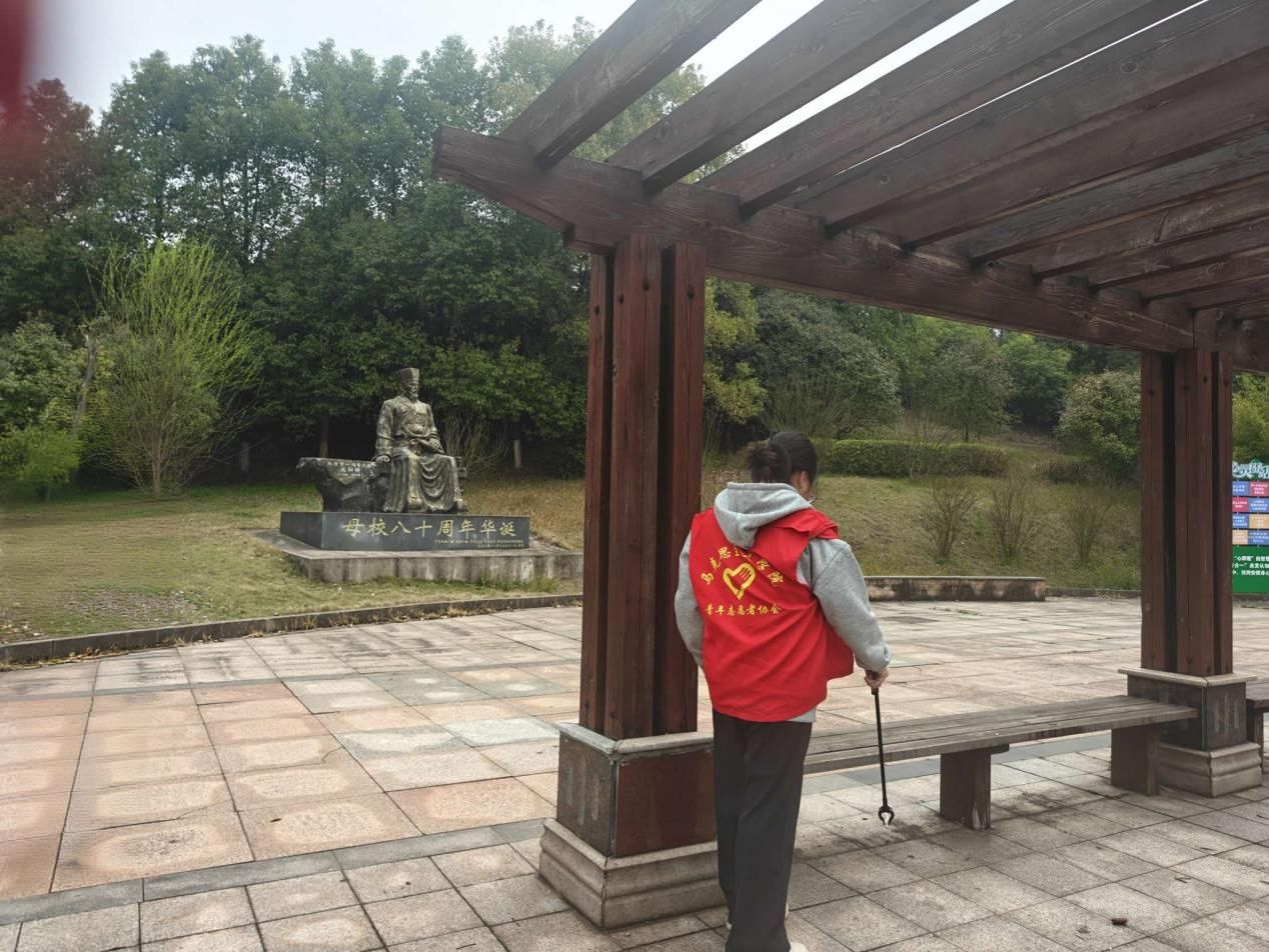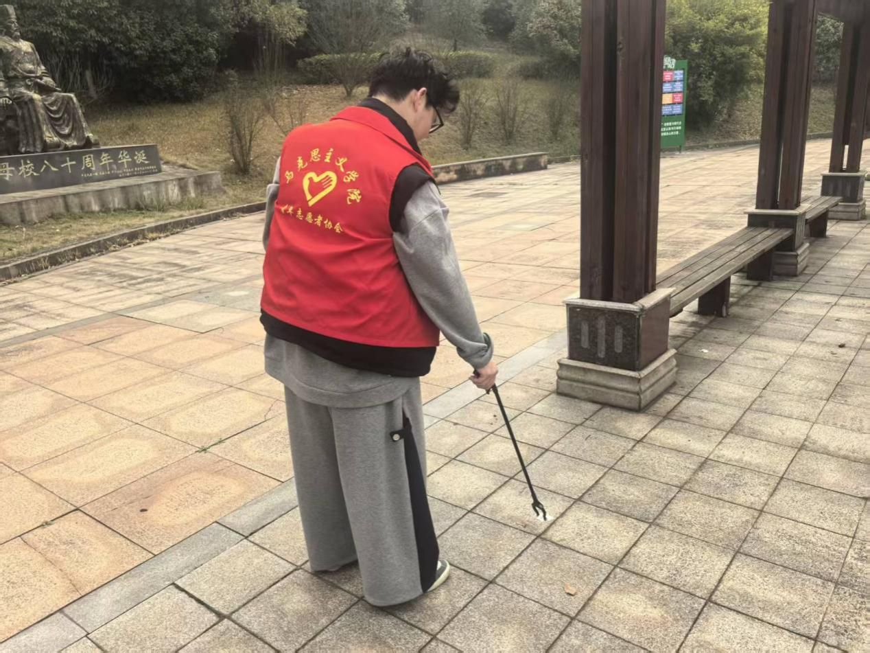 线上学习凝聚共识,线下实践践行初心。随后,志愿者们分组行动,手持夹子、垃圾袋等工具,沿校园开展垃圾清运与清扫工作,重点对塑料瓶、烟头、废纸、易拉罐等废弃物进行细致清理。经过一个小时的辛勤劳动,校园环境焕然一新,呈现出生机盎然的景象。至此,本次校园清扫活动圆满结束。