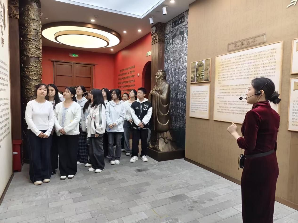 在乔兰老师授课结束后,孔庙讲解员带领师生前往儒学发展馆,深入讲解儒学的起源、演变,以及其在不同历史时期的核心思想与文化价值。同学们全程专注聆听,纷纷表示此次参观让大家对中华优秀传统文化的博大精深有了更直观、更深刻的认识,进一步坚定了文化自信。