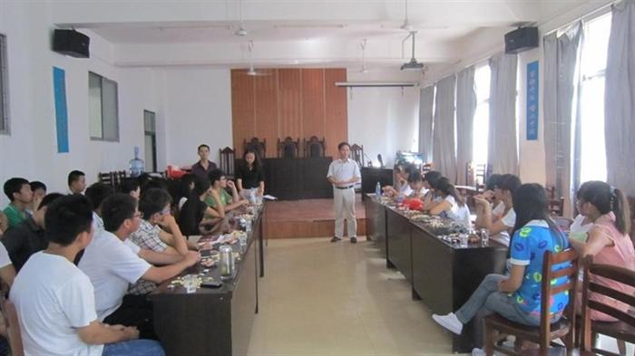 为了让远离家乡的同学们,尤其是13级新生,欢度中秋,感受家的温暖,9月18号下午3;00点,政法系在英华楼模拟法庭特意为大家准备了一个别开生面的“茶话会”。参加此次活动的有政法系党总支书记叶继林,新生班主任陈方前老师,辅导员刘萍老师,11、12级部分员工以及13级全体新生。