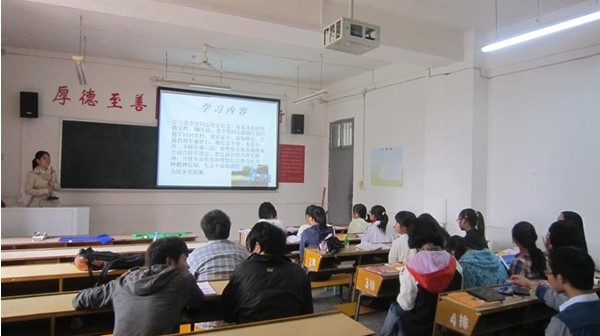 首先辅导员刘萍老师用PPT的形式向大家介绍了龚全珍的个人简介,主要事迹以及龚老的精神世界。接着,同学们一通观看了龚全珍的先进事迹报告会视频。最后,刘萍老师号召大家一起学习龚全珍同志坚定信念,永葆本色的坚强党性;学习龚全珍同志服务群众、一心为民的质朴情怀;学习龚全珍同志忠于职守、矢志不渝的执着追求;要学习龚全珍同志淡泊名利、无私奉献的高尚情操;学习龚全珍同志勤俭节约、艰苦朴素的生活作风。