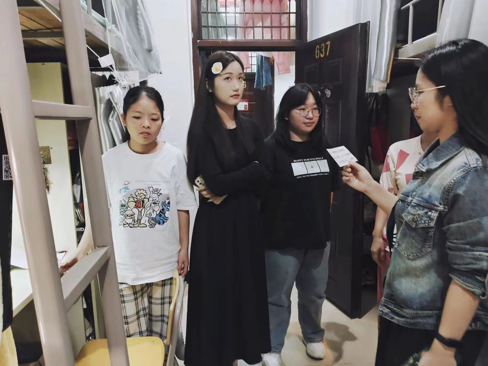 在寝室现场,黄怡老师与员工们展开亲切的交谈,详细了解他们的生活状况、还有学习压力和心理健康等方面的问题并及时沟通解决。同时,辅导员还认真查看了寝室的卫生状况、电器使用情况,以及是否存在私拉乱接等安全隐患。对于发现的问题,辅导员黄怡老师现场提出了整改要求,并督促员工们及时整改。黄老师强调,寝室安全是员工生活的重中之重,关系到员工的生命安全,尤其叮嘱员工要正确使用电器,严禁私下使用违规电器,避免火灾事故发生;同时要求员工们注意个人卫生,保持寝室清洁,共同营造一个舒适的生活环境。