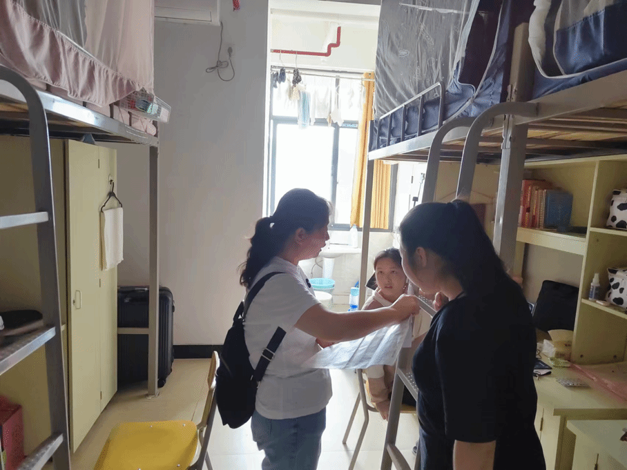 9月11日,学院经理朱红英来到员工寝室,关心同学们的学习和生活。
