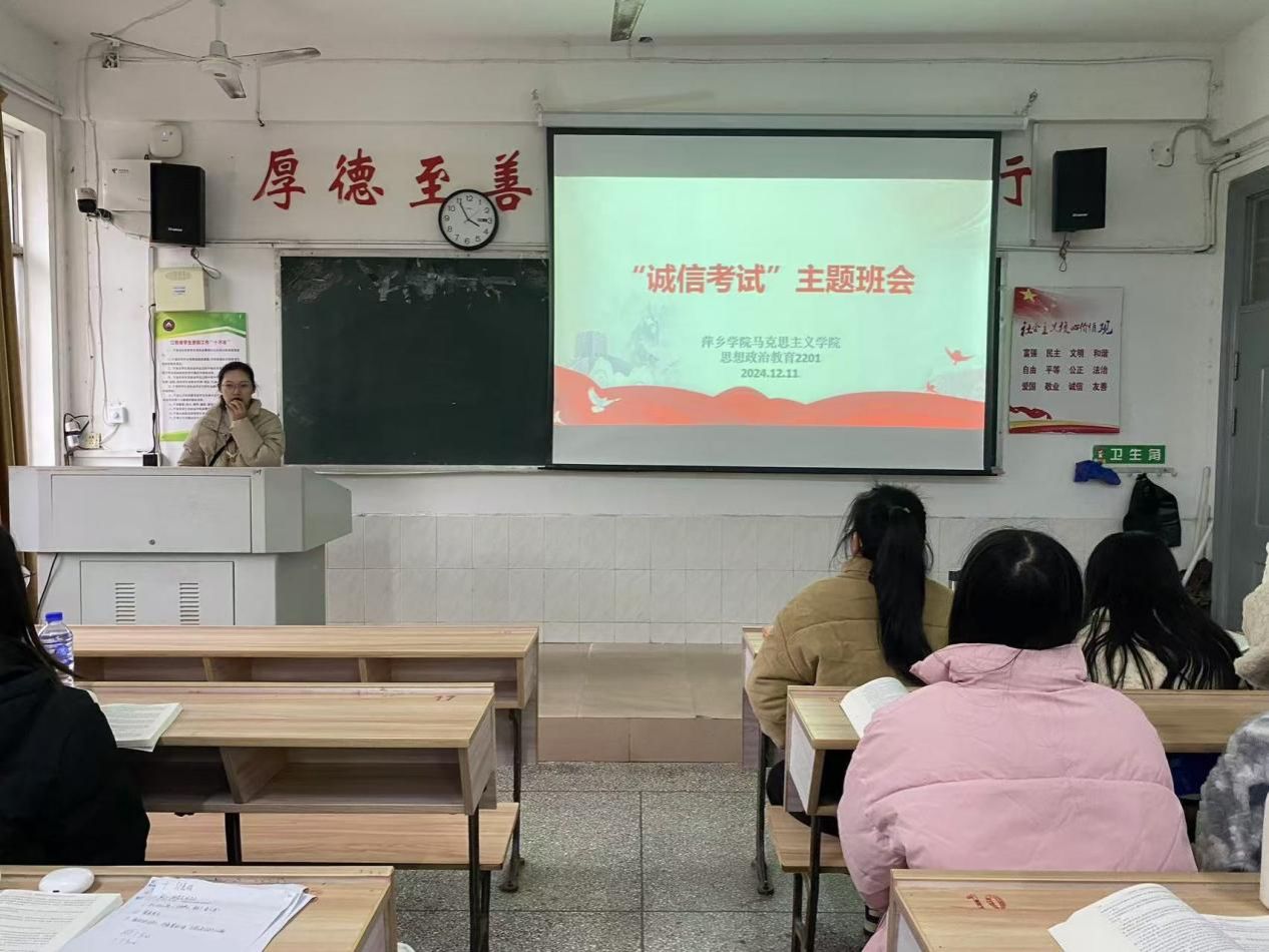 为引导员工树立正确的考试观念,严肃考风考纪,营造诚信考试的良好氛围。12月11日,22思政班于跬步楼1109召开了诚信考试主题班会。此次班会由辅导员段杉主持,22思政班全班同学共同参与。