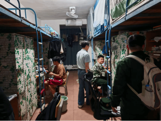 走访过程中,得知一名男生因军训时长时间保持队列姿势,训练结束后出现小腿抽筋症状,凌老师与班级同学一起为该同学按摩与热敷。刘老师细致叮嘱同学们军训注意事项:训练前要做好热身,间隙适当活动腿部,睡前可用热水泡脚预防抽筋,还特意留下联系方式,让员工有不适随时联系。他们的贴心关怀,让男生卸下了痛苦与不安,真切感受到来自学院的温暖。